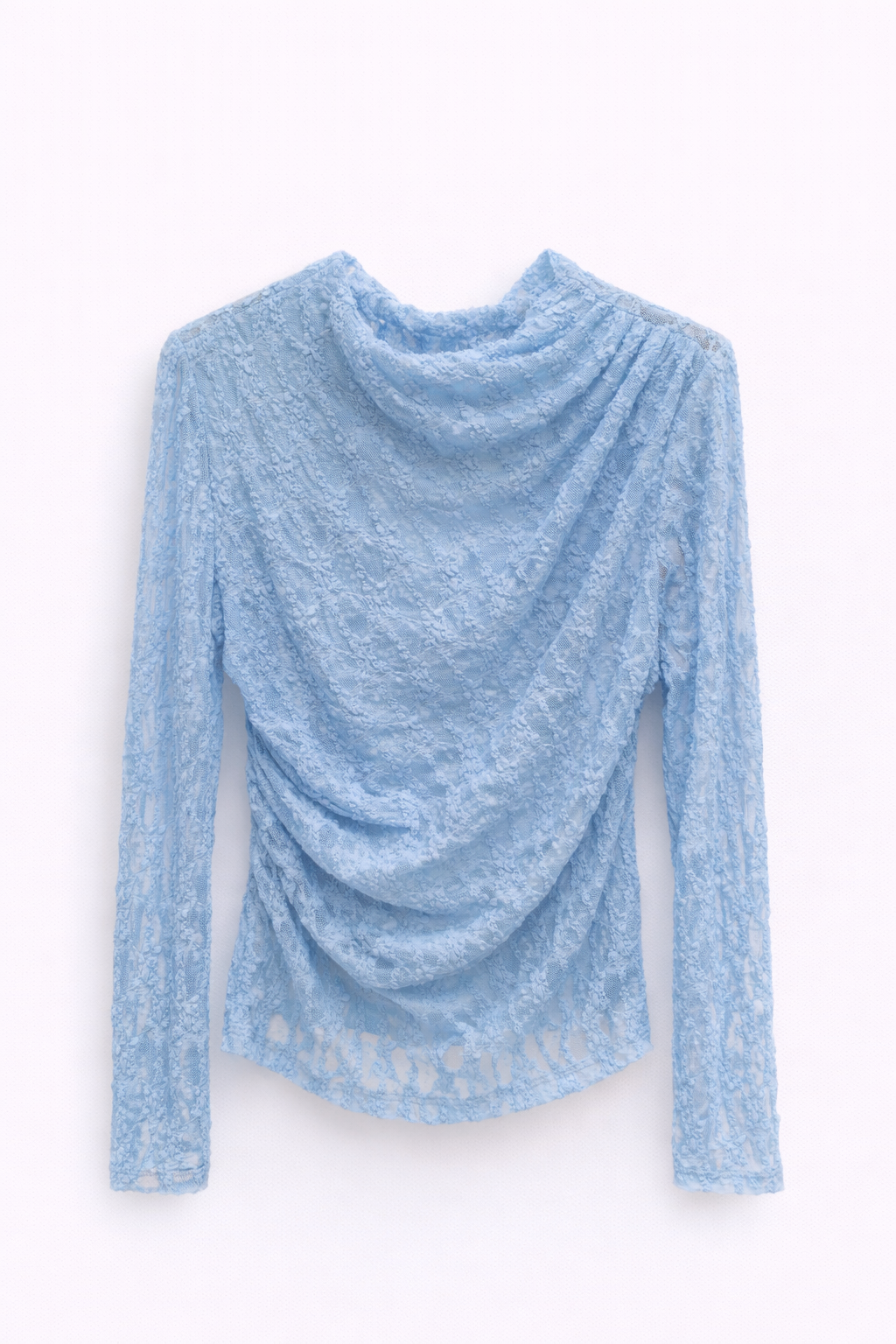 Blusa com delicadas transparências, mangas compridas e gola suave drapeada que cria um efeito elegante e moderno. O tecido leve e texturizado proporciona conforto e um caimento sofisticado. Ideal para compor looks elegantes, tanto para o dia quanto para ocasiões especiais. Disponível em varias cores.