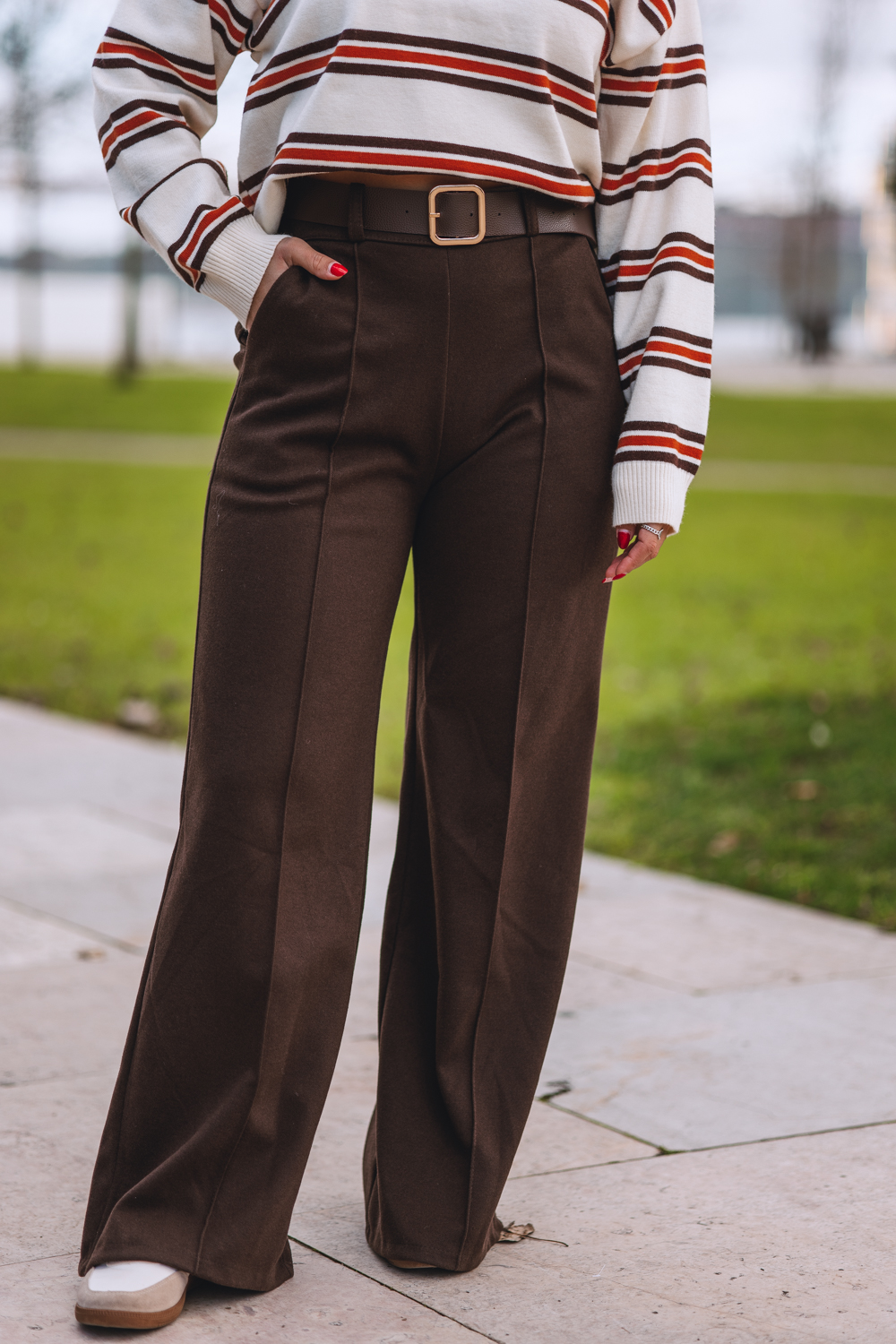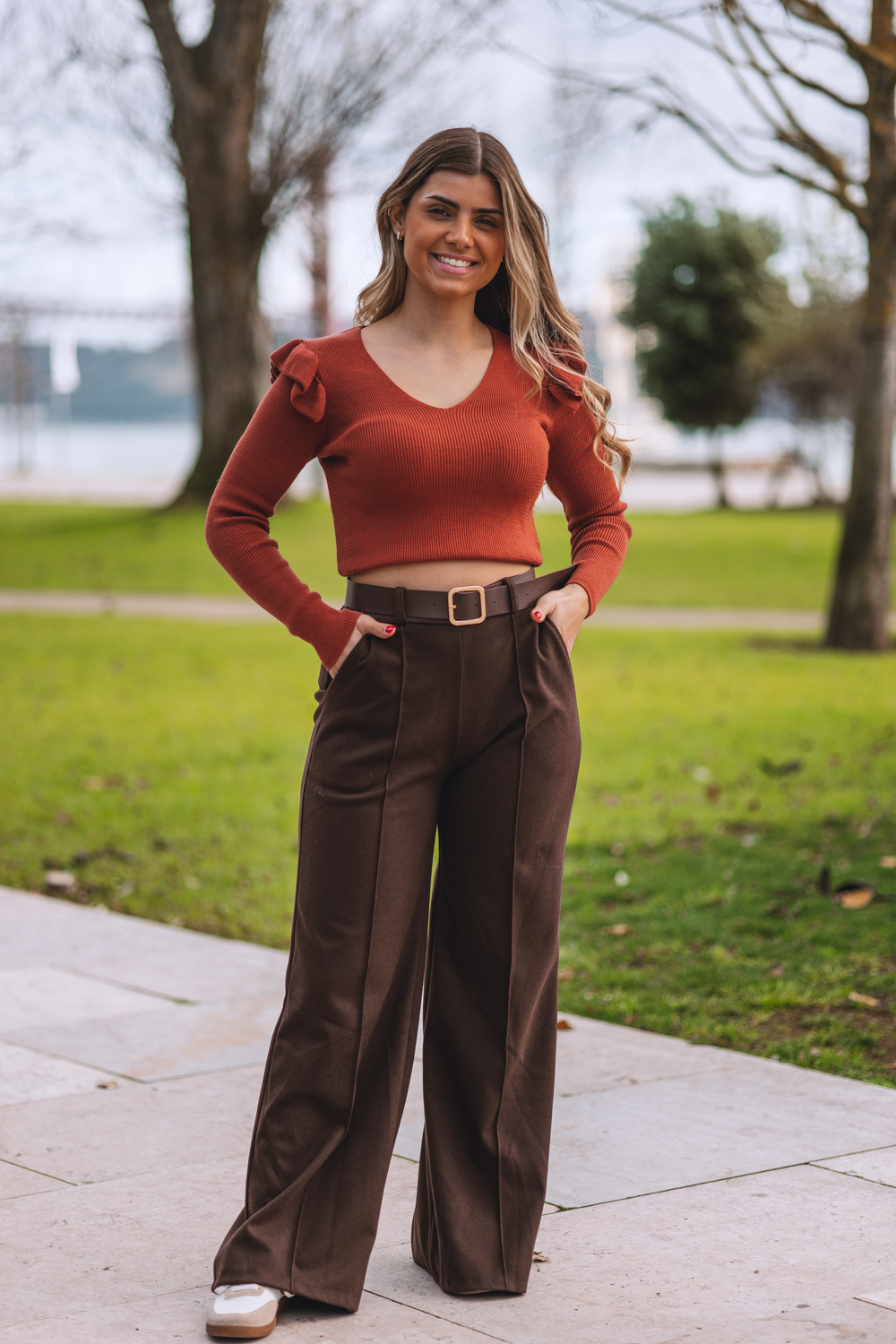 Calças de cintura alta com corte reto e confortável, caimento elegante que alonga a silhueta. Versáteis, perfeitas para looks do dia a dia ou mais arrumados. Disponível em duas cores.