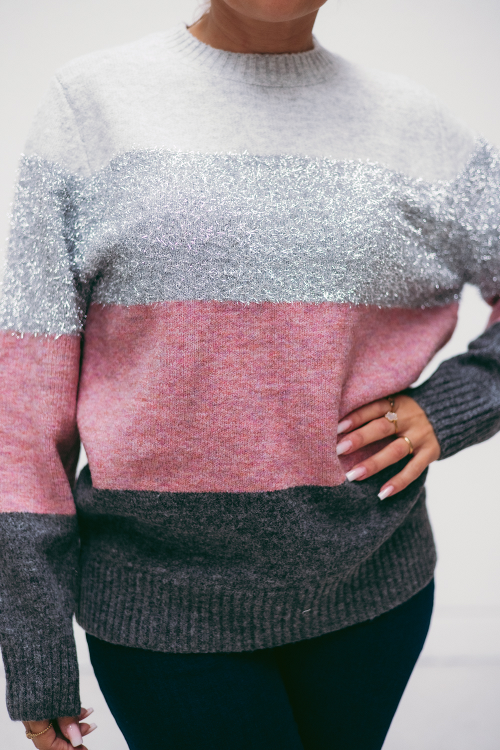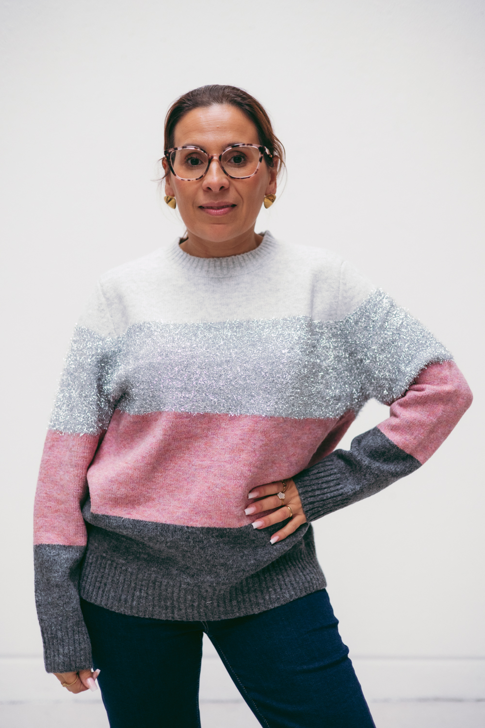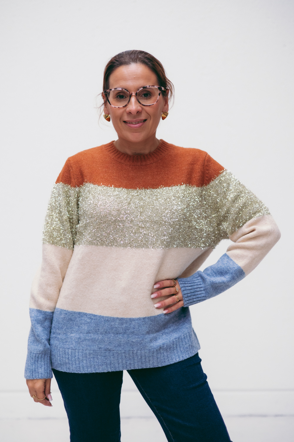 A modelo mede 163cm e está a vestir um M/L