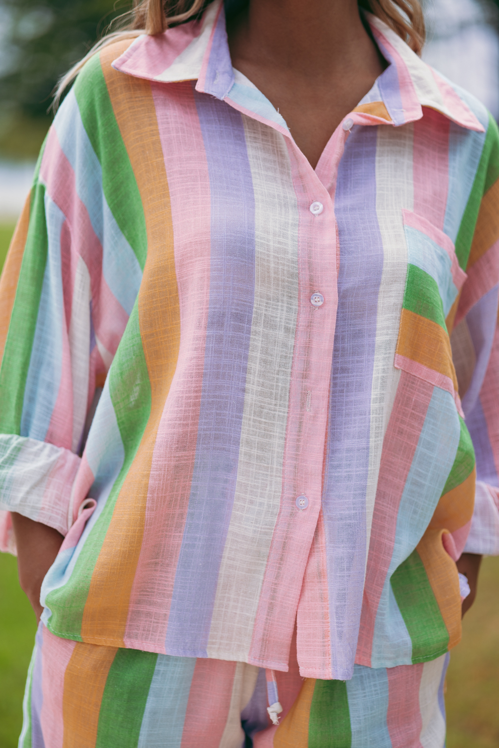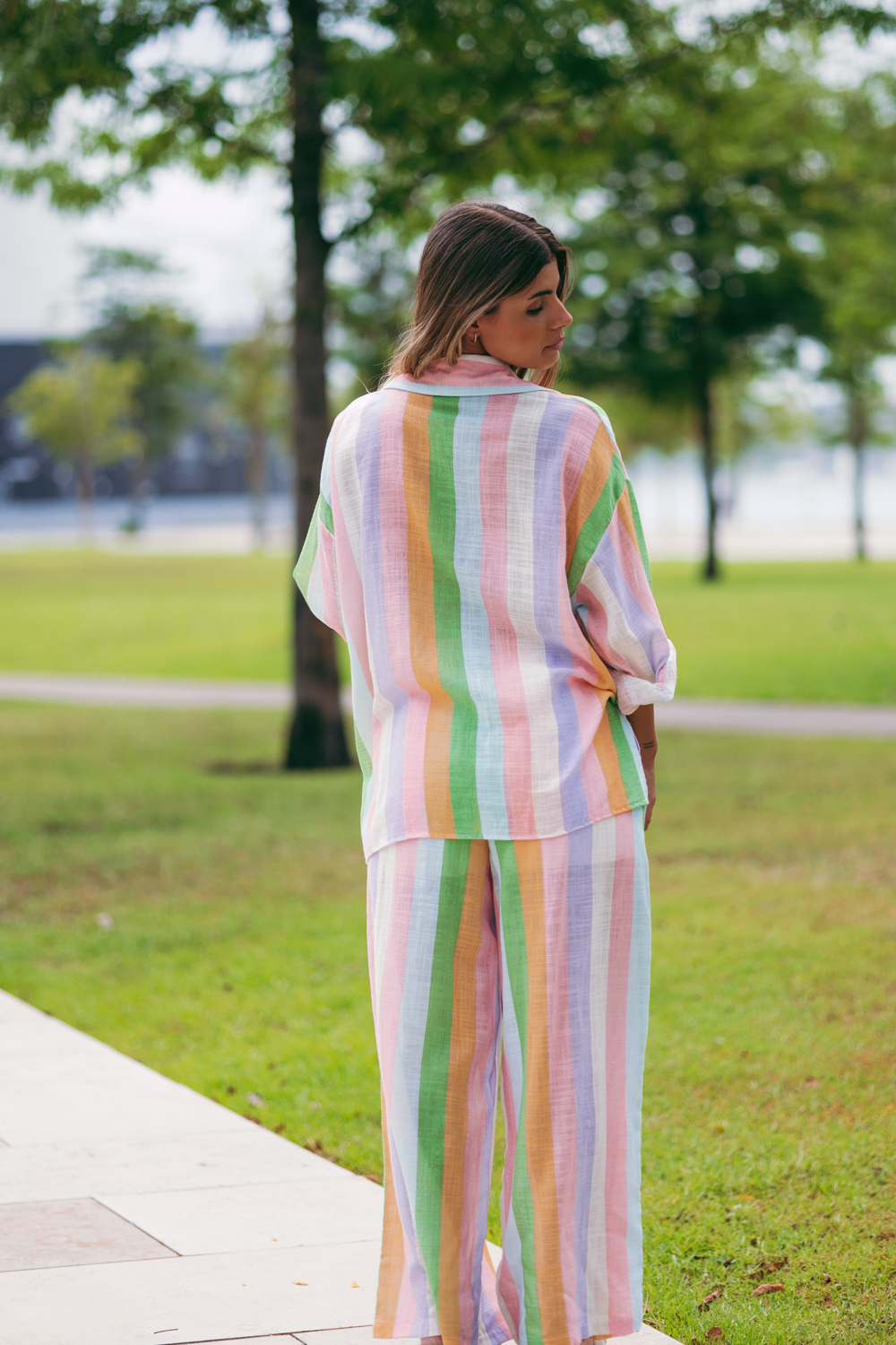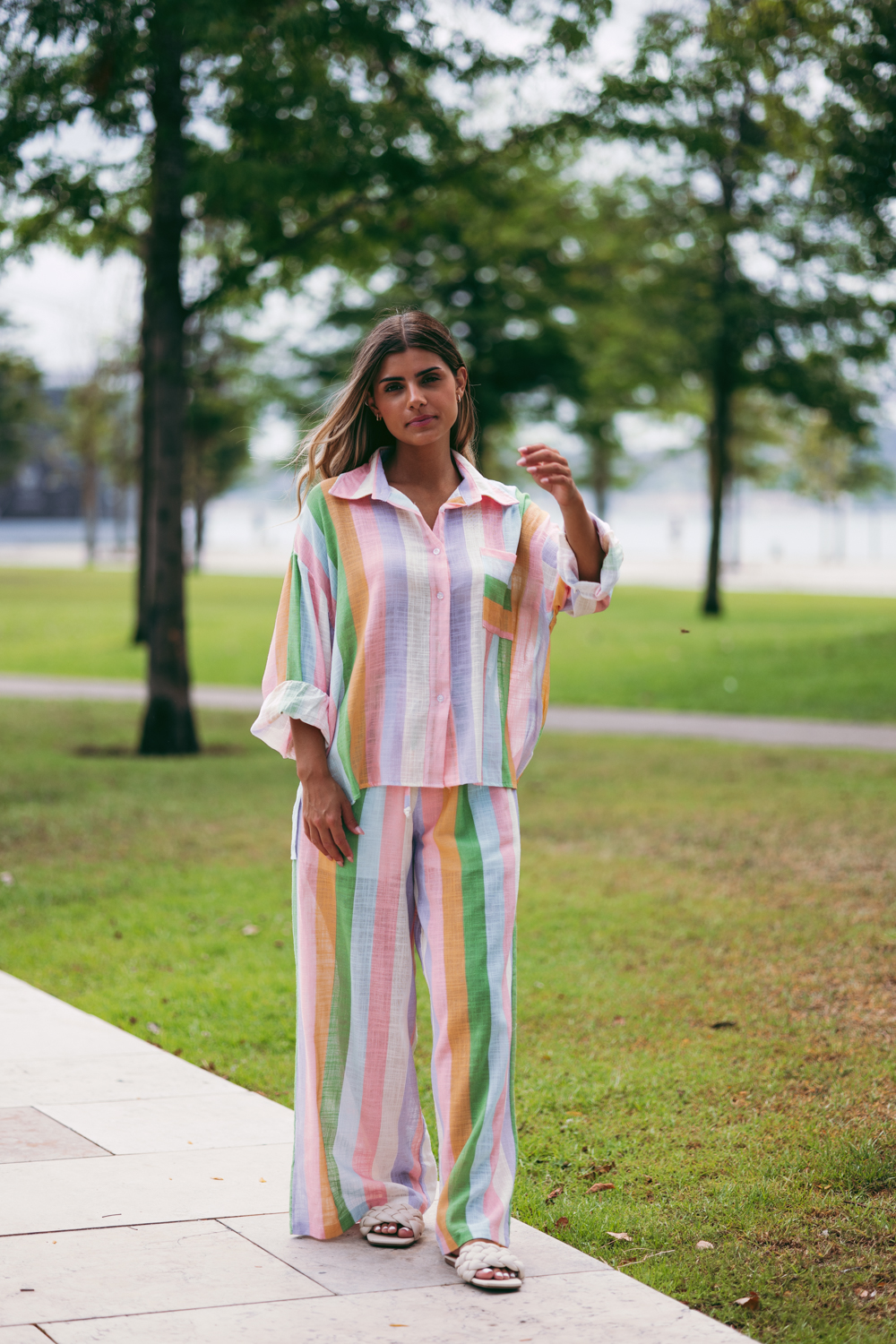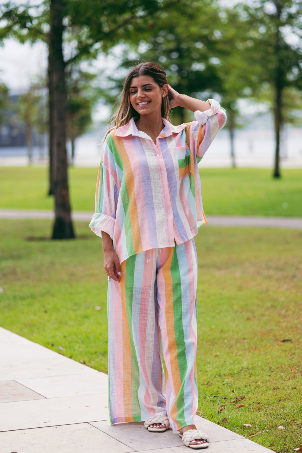 - Conjunto camisa e calça com forro e elástico ajustável na cintura e bolsos