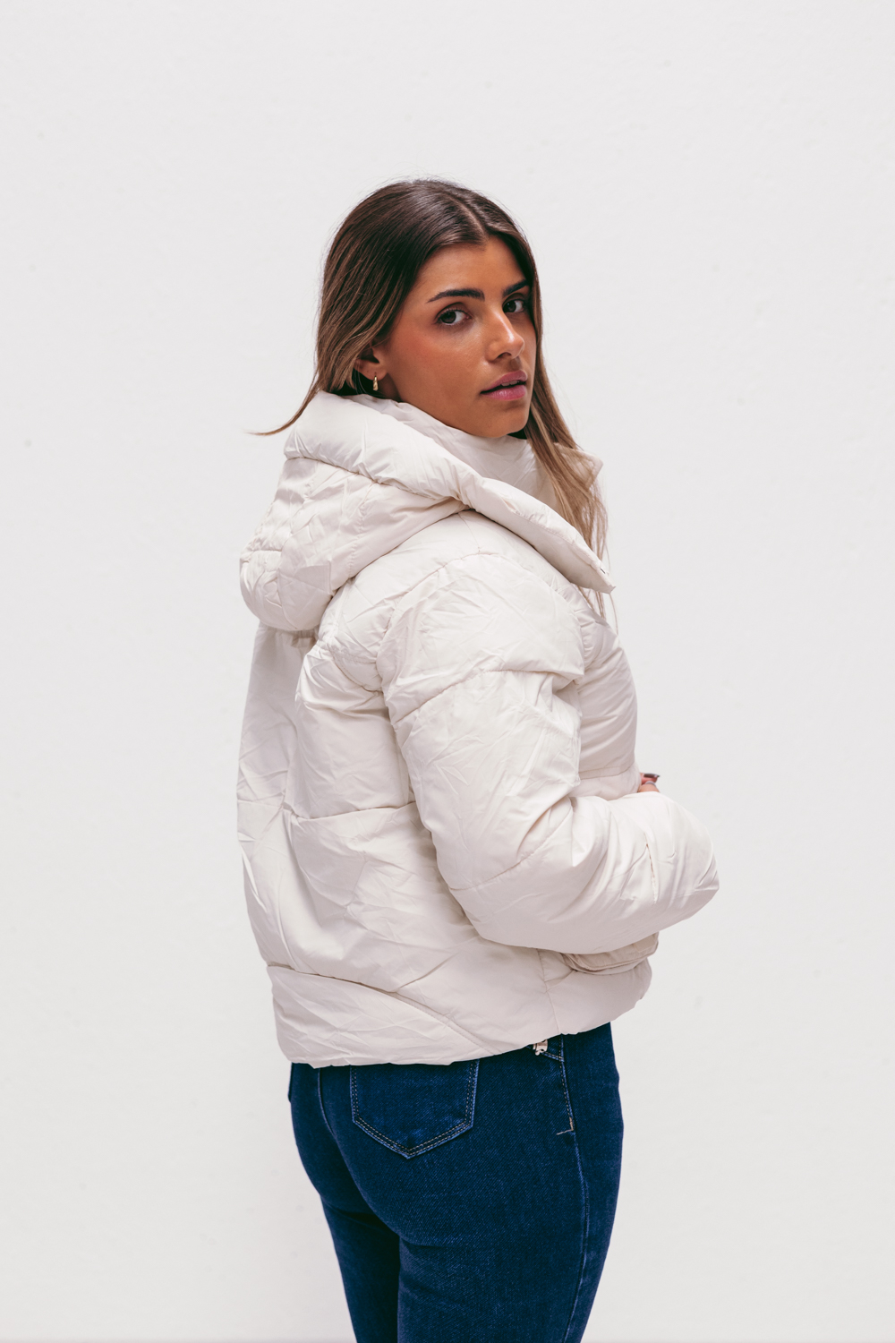 A modelo mede 163cm e está a vestir um M