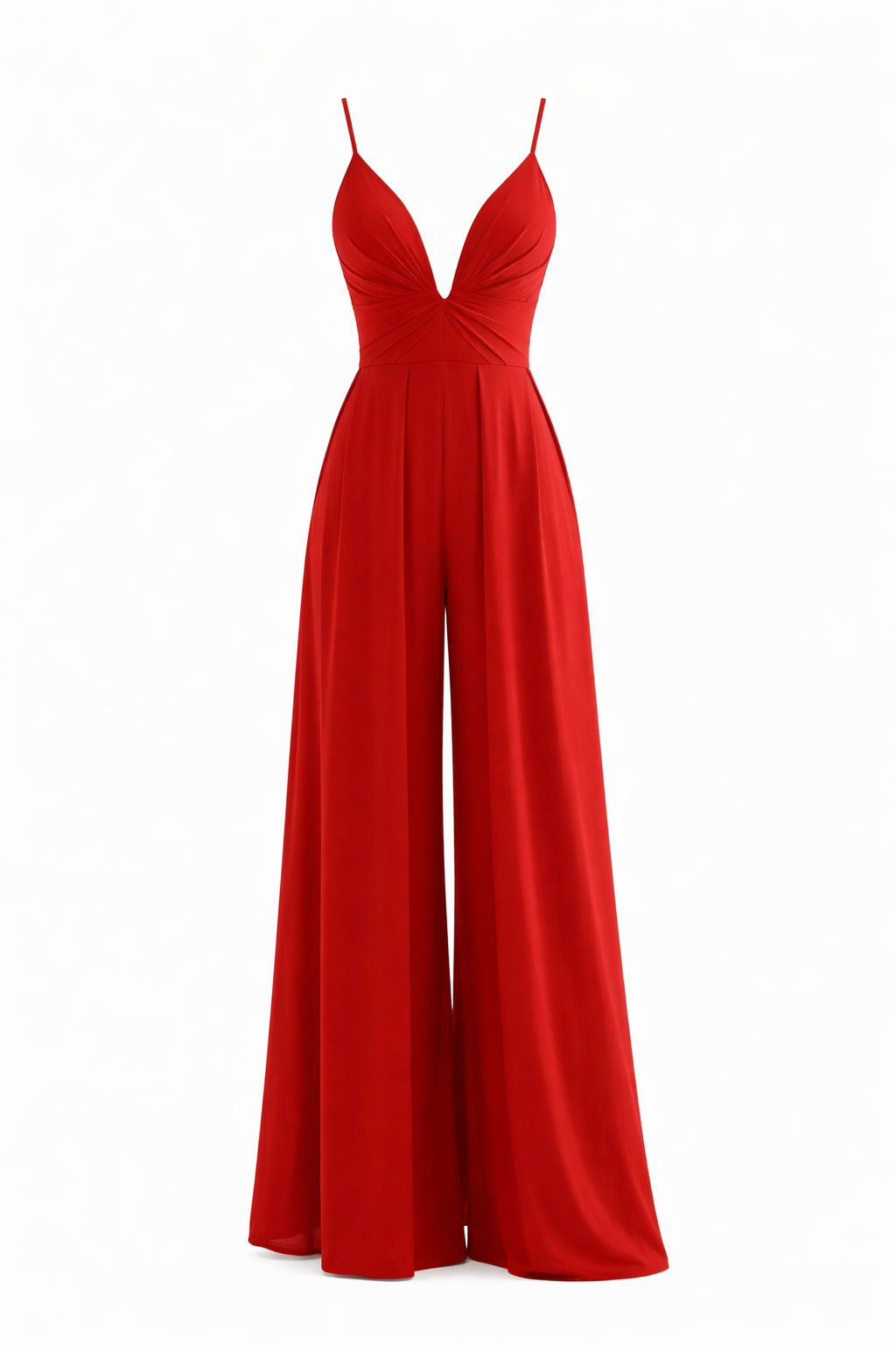 Macacão de cerimónia com corte fluído e calças largas, ideal para eventos elegantes. Apresenta alças finas e decote em bico, conferindo um estilo sofisticado e feminino. Perfeito para ocasiões especiais que pedem um toque de glamour.