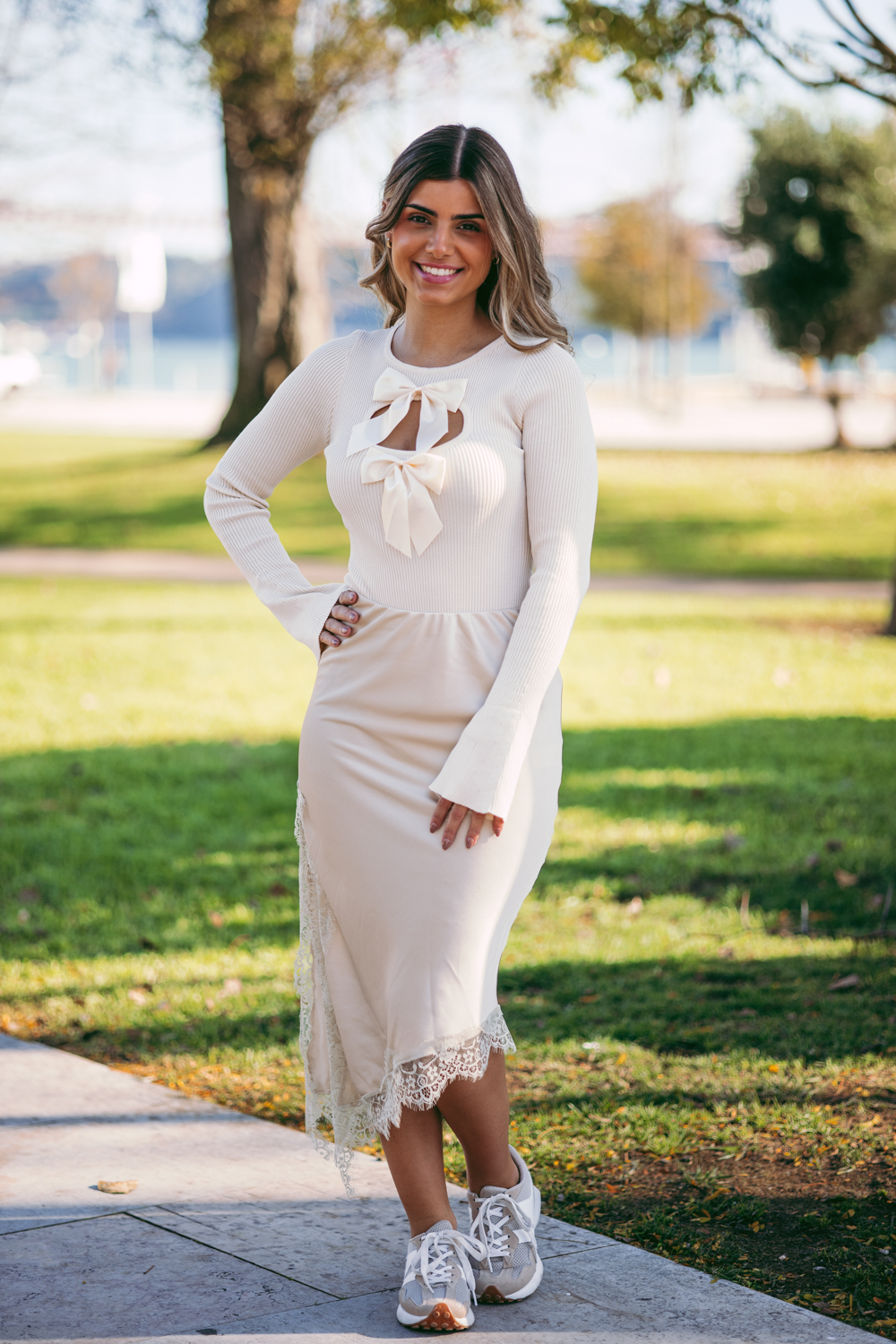 A modelo mede 163cm e está a vestir um TU