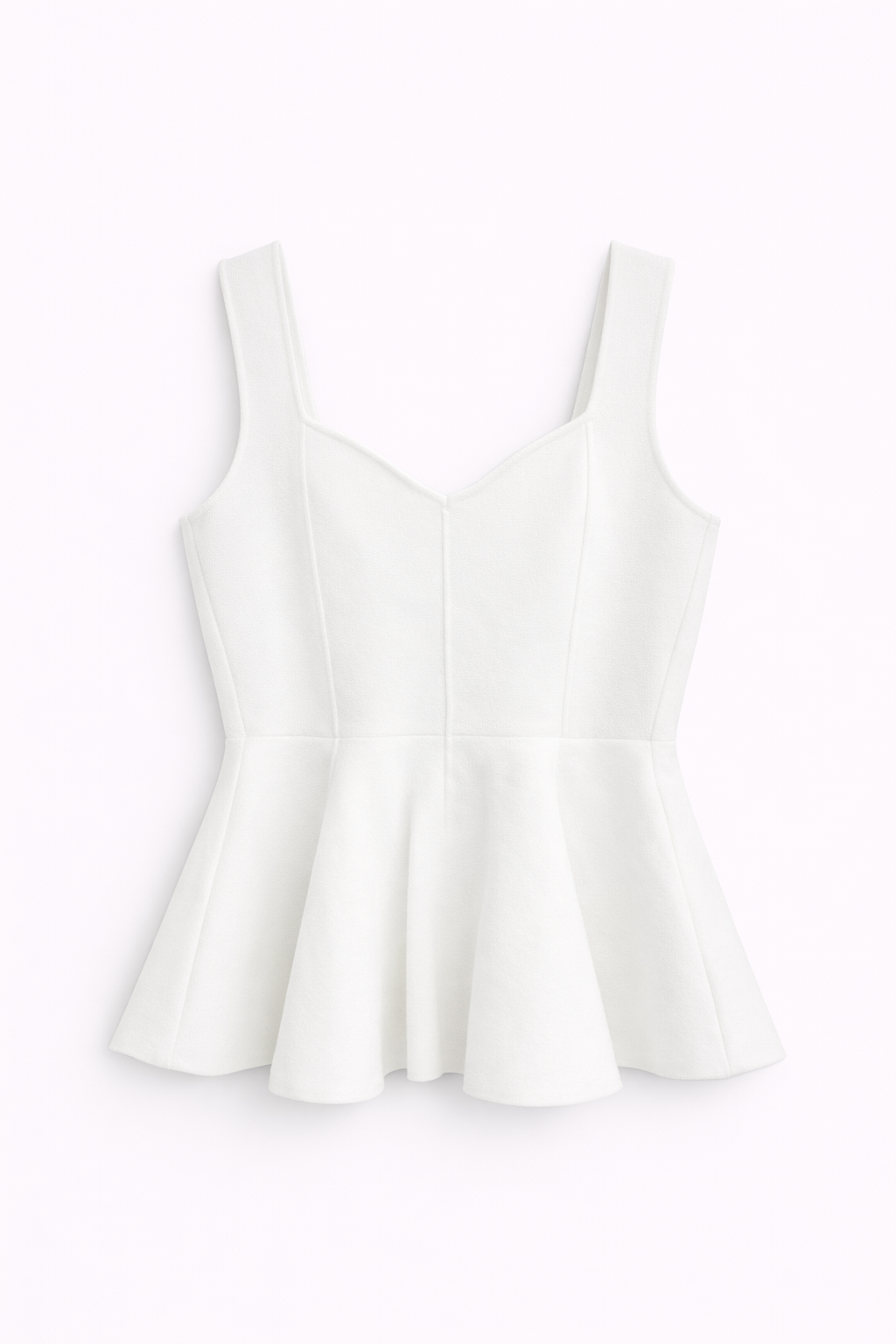 Top com corte ajustado ao corpo e saia evasê, sem mangas e com decote quadrado. Ideal para looks casuais ou mais elegantes, adaptando-se a várias ocasiões. Disponível em várias cores para combinar com o seu estilo.