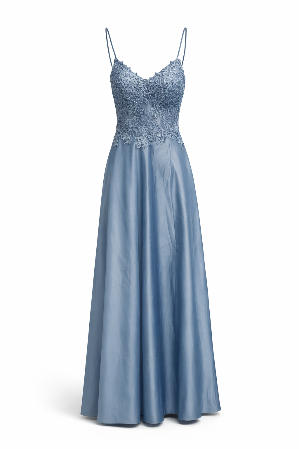 Vestido longo com corte justo e detalhes franzidos na saia, em renda rosa delicada. Decote recto com alças finas, ideal para cerimónias e eventos formais. Elegante e feminino, adapta-se a várias ocasiões especiais.